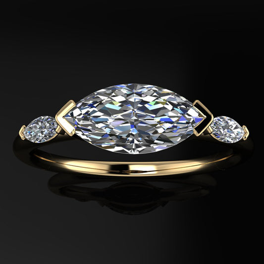 1 carat marquise moissanite engagement ring, east west ring, 3 stone ring