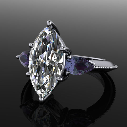 erica ring - 3 carat marquise moissanite engagement ring, ZAYA moissanite 3 stone ring