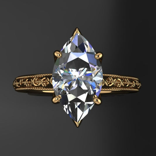 2 carat marquise moissanite ring, marquise engagement ring, gifts for her, margo engagement ring, perla wedding band