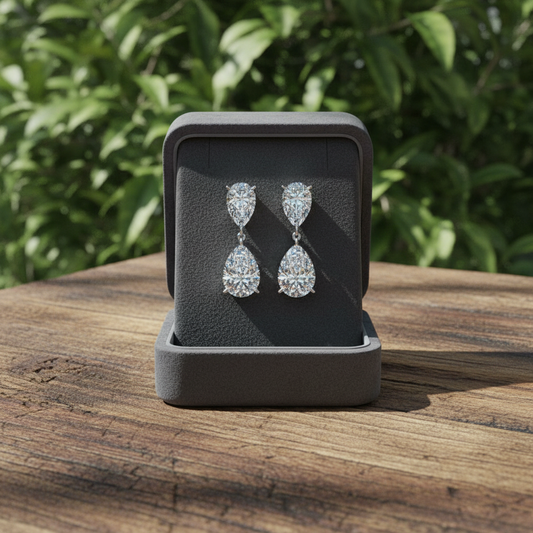 pear moissanite dangle earrings, sofia richie inspired wedding earrings with claw prongs