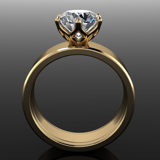 nova ring - 2 carat round lab grown diamond engagement ring, lab grown diamond cigar band ring, wide engagement ring, statement ring
