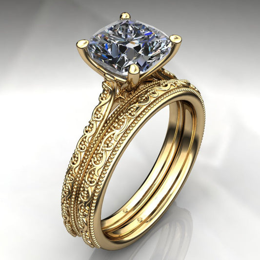 perla ring - 2 carat cushion cut moissanite wedding set, moissanite engagement ring