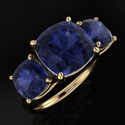 Private Listing for Kammy - 20 carat lab sapphire ring ring, cushion sapphires, 3 stone ring - final payment