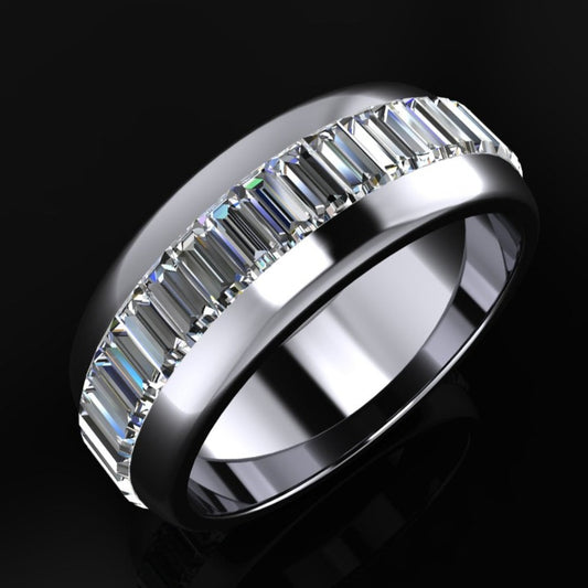 pierre ring - emerald cut moissanite mens ring, 4.35 ctw, wide platinum wedding band