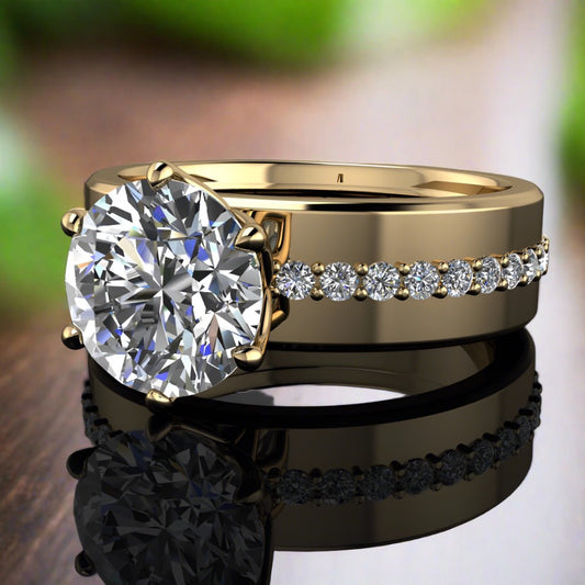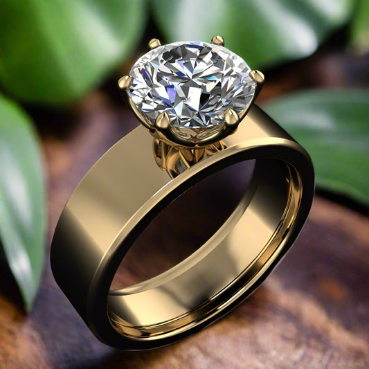 phoenix II ring - 2 carat round lab grown diamond engagement ring, lab grown diamond cigar band ring, wide engagement ring, statement ring