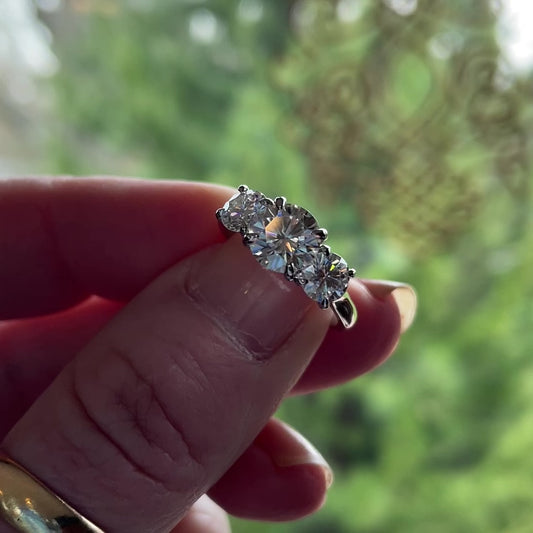 ready to ship - eden ring - 2 carat round moissanite engagement ring, 3 stone anniversary band