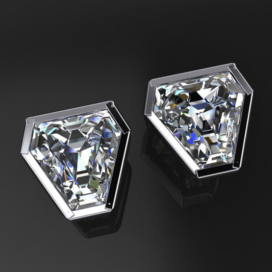 shield cut moissanite earrings, ZAYA moissanite 14k gold stud earrings