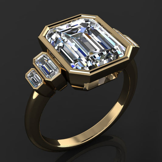 taylor ring – 3.5 carat emerald cut NEO moissanite engagement ring, bezel set engagement ring
