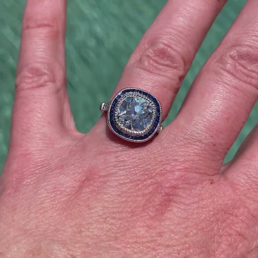 vivian ring - 4 carat old mine cut cushion moissanite and sapphire vintage engagement ring, ZAYA moissanite