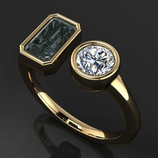 xena ring - 2 stone band ring, moissanite ring, moi et toi ring