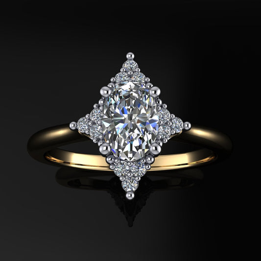 zoey ring – 1 carat oval moissanite and diamond engagement ring, NEO Moissanite, diamond halo