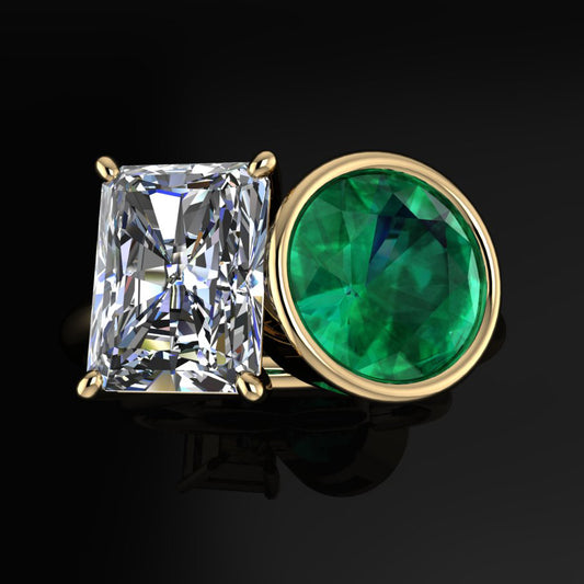 zuri ring - moi et toi engagement ring - radiant and round moissanite ring