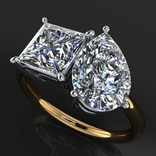 zuri ring - unique engagement ring - pear and princess moissanite ring