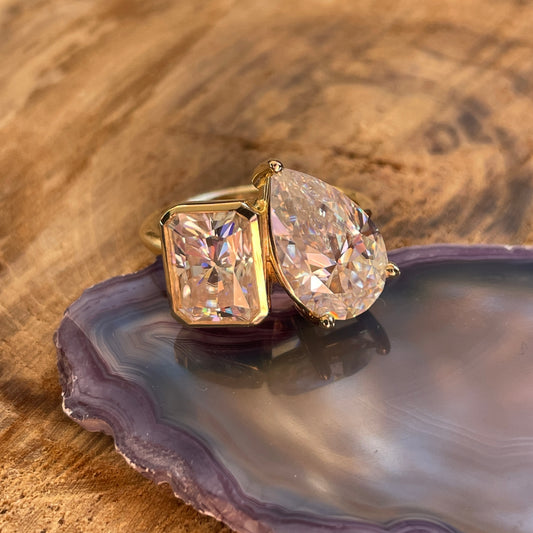 zuri ring - moi et toi engagement ring, pear and radiant moissanite ring
