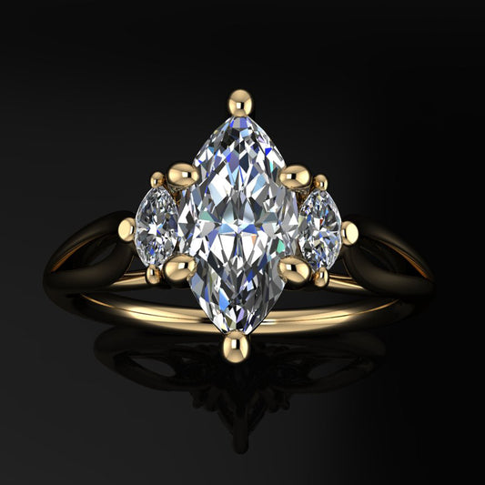 annabelle ring – 1 carat marquise moissanite engagement ring, 3 stone ring, past present future