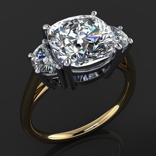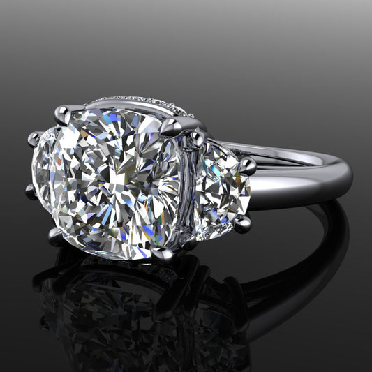 ava ring - 3 carat cushion NEO moissanite engagement ring, half moon side stones
