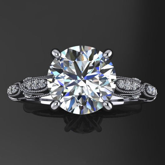 annette ring - 2 carat round cut moissanite engagement ring, colorless moissanite - annette ring
