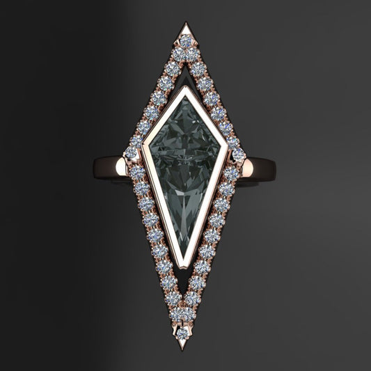 atlas ring - 2.5 carat kite shaped moissanite and diamond ring, ZAYA Moissanite