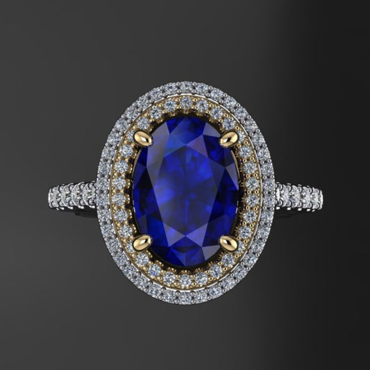 karen ring - 2.5 carat oval blue moissanite and diamond double halo ring, ZAYA moissanite