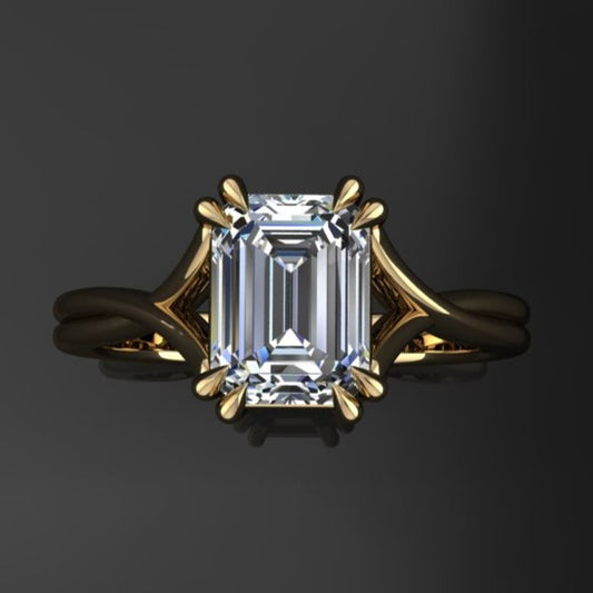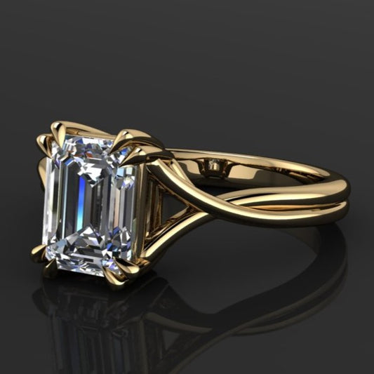 hailey ring with a 3.5mm wide band – emerald cut moissanite engagement ring, emerald shaped moissanite, solid gold ring