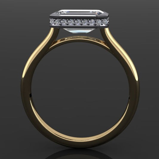 halle ring - 2 carat lab grown diamond emerald cut engagement ring, diamond side halo ring