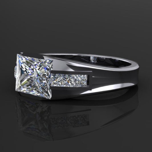 fernando ring - men's gold wedding band, 3 carat radiant cut moissanite ring