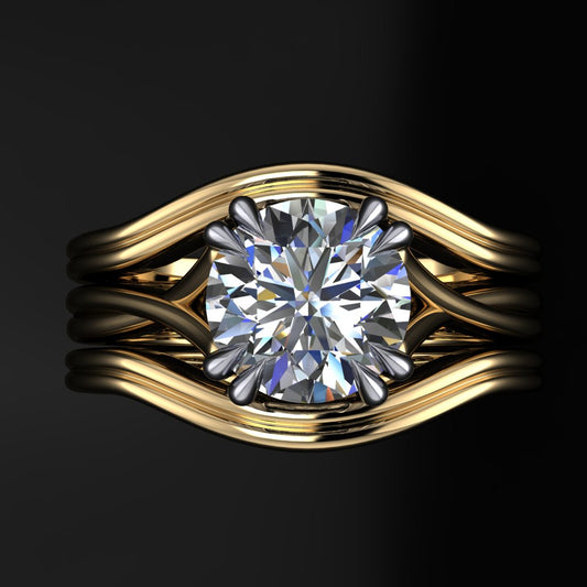 hailey ring – round moissanite engagement ring, round engagement ring, wedding set, handmade jewelry