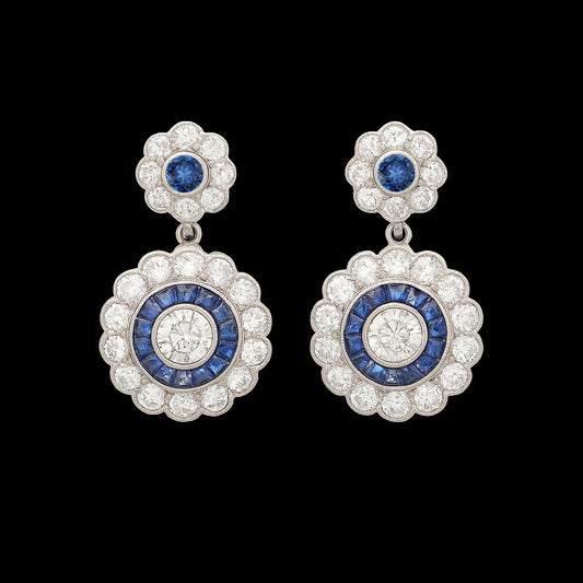 floral moissanite and lab created sapphire dangle earrings, wedding earrings