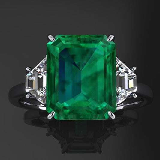 demi ring - three stone green emerald cut ZAYA moissanite engagement ring, trapezoid side stones