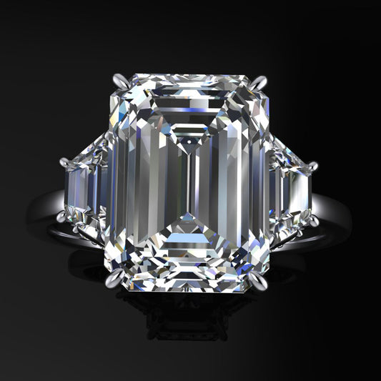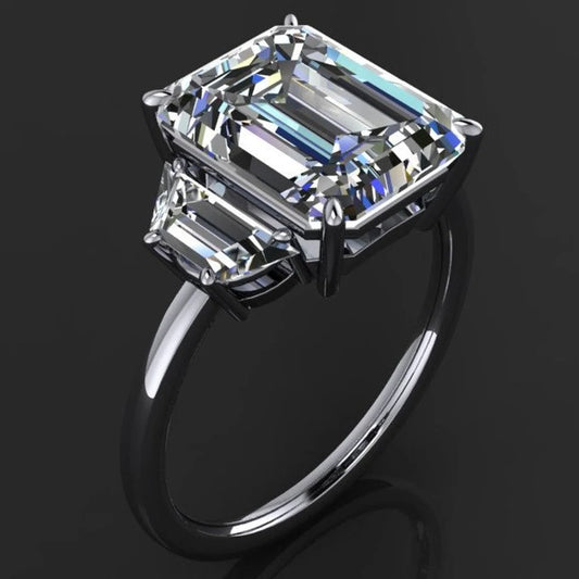 demi ring - three stone emerald cut NEO moissanite engagement ring, trapezoid side stones