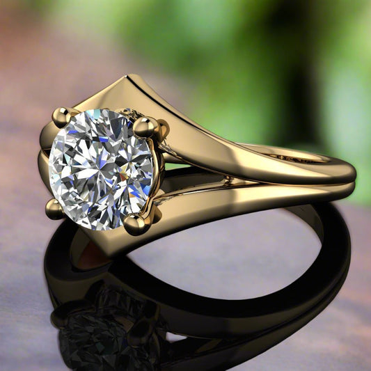 echo ring - 1 carat round lab grown diamond engagement ring, lab diamond chevron ring, statement ring